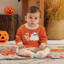 Unlike ordinary baby sweaters, this pullover brings festive fun to your little one’s outfit while still being practical and comfortable. The playful pumpkin-inspired design makes it a standout piece during Halloween season, yet it’s subtle enough to wear all autumn long. Whether you’re snapping seasonal photos, attending family gatherings, or just enjoying a cozy day indoors, this sweater makes every moment extra special.