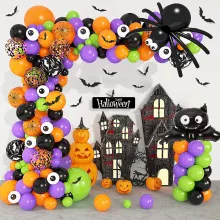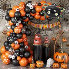 This versatile decoration kit is the ultimate accessory for your Halloween celebration. Whether you’re hosting a kids’ party, a haunted house, or a grown-up costume bash, this balloon garland arch is sure to impress. Hang it above doorways, across entryways, or use it as a backdrop for photo booths to create the perfect setting for your spooky festivities. Its combination of black, orange, and metallic elements enhances your space with dramatic flair and excitement. From haunted mansions to fun family get-togethers, this Halloween decoration kit works for all types of celebrations.