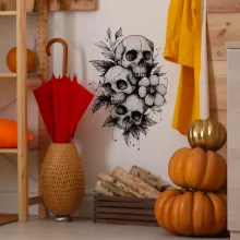 Elevate the vibe of your home this Halloween with our Black and White Skull Flower Wall Stickers. Whether you place them in your living room, bedroom, or even the entrance hall, these designs will leave a lasting impression. Perfect for those who love a touch of the eerie but also appreciate style and elegance. Don’t miss out—bring a little dark beauty to your walls today!
