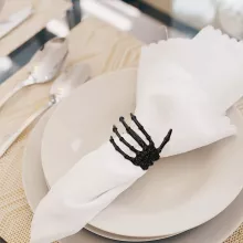 Forget boring napkin holders—your Halloween celebration deserves something extra. These palm-shaped napkin buckles aren’t just table accessories; they’re conversation starters. Lightweight yet sturdy, they hold napkins in place while enhancing your overall décor with a creepy, creative vibe. Make every meal more memorable and every table setting picture-perfect with this distinctive Halloween tabletop detail.