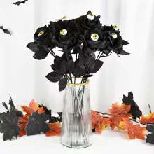 Looking for the perfect touch to elevate your spooky setup? These Halloween Black Roses with Eyeball Accents are a chillingly beautiful addition to your décor. Designed to be both eerie and elegant, each artificial rose is crafted with dark black petals and a striking eyeball detail at the center, creating the ultimate creepy effect for your haunted house, party, or seasonal displays.