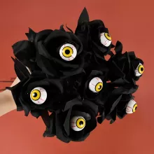 Create a haunting atmosphere with ease. Add these Black Rose Eyeball Flowers to your cart today and let your creativity bring your Halloween vision to life. Whether as a table centerpiece, wall décor, or part of a larger bouquet, these flowers promise to be the ultimate frightful finishing touch.