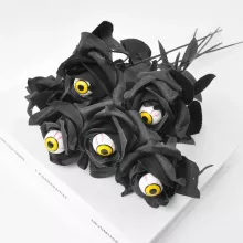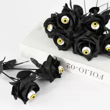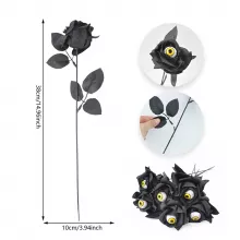 Each flower features a realistic black silk rose paired with a creepy faux eyeball nestled in the center – a striking and unsettling combination that draws attention instantly. Crafted from high-quality silk material, the petals have a soft, lifelike feel, while the detailed eyeball offers a blood-curdling surprise. Measuring approximately 11.8 inches in length, these spooky stems are perfect for floral arrangements, vases, or DIY Halloween crafts.