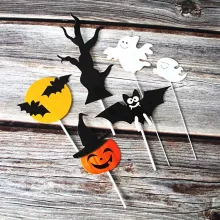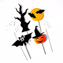 Celebrate Halloween in spine-tingling style with our Happy Halloween Cake Topper Set, a must-have decoration to bring your party treats to life! Designed to capture the spirit of the season, this charming set features iconic Halloween shapes including pumpkins, haunted trees, bats, ghosts, moons, and festive flags – all in vivid seasonal colors to give your cakes, cupcakes, and desserts an unforgettable spooky twist.