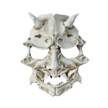 This mask is crafted from eco-friendly, non-allergenic resin with a precision metal laser cutting process. Lightweight at just 7 oz, it is comfortable to wear for hours. Measuring 6.9 inches high and 8.3 inches wide, it fits naturally to the contours of the face. The 3D effect and retro-inspired details give it a one-of-a-kind look, while the elastic band ensures it adjusts easily to fit most adults.