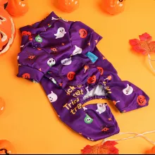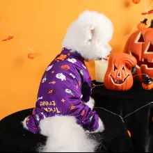 Get your furry friend ready for spooky season with these charming Halloween Dog Pajamas. Designed in a playful purple shade, this all-in-one dog outfit combines style, comfort, and function. With its cute four-legged pants design, your pup will look festive while staying cozy during the autumn chill. Crafted from lightweight polyester, this homewear is soft on the skin and perfect for indoor lounging or casual outdoor strolls.