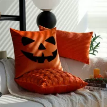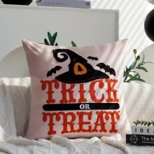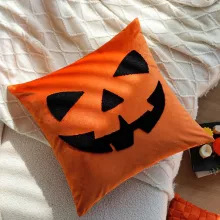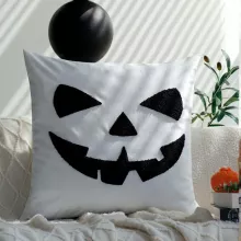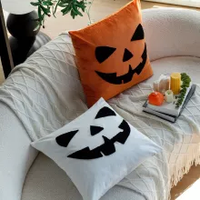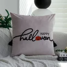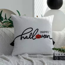 Crafted from a blend of polyester, cotton, and velvet, this 18×18 inch (45×45 cm) square pillow cover features single-sided embroidery with a terrifying cartoon ghost face or spooky lettered design—perfect for those who love Halloween with flair. The embroidery work is clean, bold, and full of personality, making it a show-stopping piece for your seasonal decorations.
