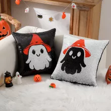 Don’t settle for boring décor this Halloween. Let your style shine — and shimmer — with our ghost-themed sequin pillow cover. Click “Add to Cart” now and bring home the spooky sparkle your celebration deserves!