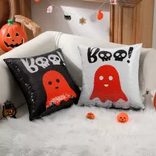 Halloween Ghost Sequin Pillow Cover – Spooky Reversible Cushion for Home & Party