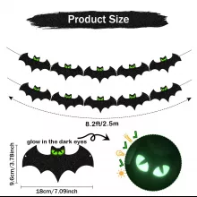 • Glow-in-the-dark eyes: This banner features bats with luminous eyes that shine brightly in the dark, making your Halloween decorations come to life at night.