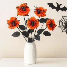 Make your home decor hauntingly beautiful with this Halloween Gothic Artificial Rose. Designed with eerie charm and realistic detail, this handmade bouquet blends the mystery of deep roses with the spookiness of a spider accent. Standing at 15 inches tall, it is the perfect centerpiece to set the mood for Halloween or add a unique gothic flair year-round. Whether displayed in a vase, used in a themed arrangement, or styled for a party, this flower is a striking choice that instantly transforms any space.