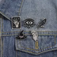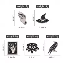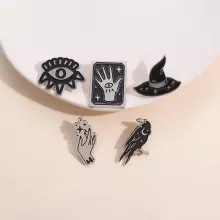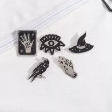 - Unique Design: A fusion of gothic and mystical symbols — wizard hat, crow, tarot hand, and all-seeing eye — in one powerful brooch.