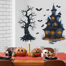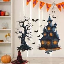 These stickers are crafted from high-quality PVC material, ensuring durability while being easy to apply and remove. They contain no harmful chemicals, making them safe for use around children and pets. The detailed designs of the haunted castle, leafless dead tree, and creepy Halloween silhouettes bring a dramatic, shadowy effect to your walls without the mess of paint or damage from nails.