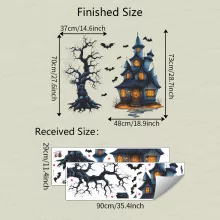 These stickers are crafted from high-quality PVC material, ensuring durability while being easy to apply and remove. They contain no harmful chemicals, making them safe for use around children and pets. The detailed designs of the haunted castle, leafless dead tree, and creepy Halloween silhouettes bring a dramatic, shadowy effect to your walls without the mess of paint or damage from nails.