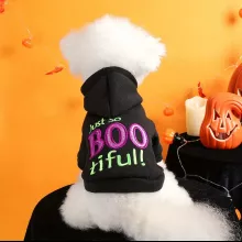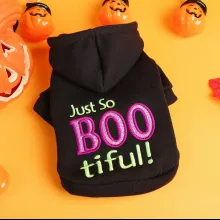 Treat your furry friend to the ultimate Halloween look with this funny, warm, and irresistibly adorable hooded sweater. Designed for both dogs and cats, this black Halloween-themed jacket is more than just a costume—it’s a cozy statement piece your pet will love wearing. With its eye-catching purple English embroidery and unique Halloween vibe, your pet will be the center of attention at any fall event, photo shoot, or neighborhood stroll.