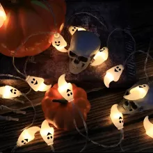 Transform your home into a haunted wonderland with these enchanting Halloween LED String Lights. Measuring 5 ft in length, this decorative light string features a mix of pumpkins, ghosts, skulls, and eyeballs that glow with a warm, eerie light. Perfect for creating a spooky atmosphere, these lights add instant charm whether you’re decorating indoors or outdoors. From Halloween parties to trick-or-treat nights, this string light is a must-have for your seasonal setup.