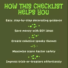 This digital checklist is designed for Halloween lovers, homeowners, parents, and party planners who want to make their outdoor decorations truly unforgettable. Whether you’re hosting a spooky bash or just want to impress trick-or-treaters, this resource makes the process fun, easy, and effective.