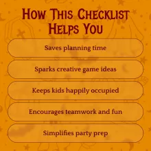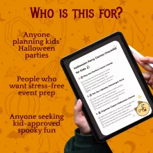 Make your party planning stress vanish like magic. Download the Halloween Party Games Checklist for Kids now and create a fun-filled, unforgettable Halloween party your little ghosts and goblins will talk about all year. Click “Add to Cart” to get started!