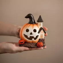Looking for a unique, eye-catching decoration that captures the true spirit of Halloween? Our Halloween Pumpkin House Figurine is just the piece your spooky setup needs. Handcrafted with attention to detail and made from durable resin, this haunted house ornament adds a festive and eerie charm to your home, office, or party space. Whether you’re decorating your mantel, bookshelf, or windowsill, this creepy-cute pumpkin house will draw everyone’s attention and spark curiosity.