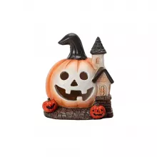 Halloween Pumpkin House Figurine – Resin Haunted House Tabletop Decor