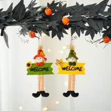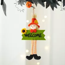 Bring warmth, fun, and a festive spirit to your front door or living space with this delightful scarecrow welcome sign pendant. Designed with long legs and seasonal details, it’s the perfect accent to celebrate Halloween. Whether you hang it on your front door, porch, wall, or window, this cheerful decoration instantly makes your home feel inviting and ready for the season.