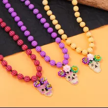 Designed for those who love unique fashion, this necklace features a detailed skull pendant that measures approximately 2 inches in height. The intricate beaded chain adds texture and visual interest, giving the piece a handcrafted feel. Lightweight yet durable, it’s comfortable to wear all night at parties or during casual outings.