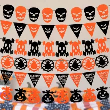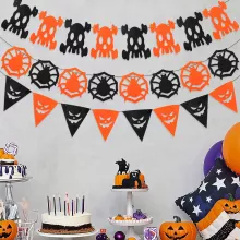 Transform any space into a festive haunt with this Halloween Skull & Spider Banner. Designed in striking black and orange, this bunting is perfect for creating a chilling yet playful vibe that instantly sets the mood. Whether you’re decorating a KTV bar, hosting a Halloween bash, or planning a themed birthday party, this hanging décor brings out the spirit of the season.