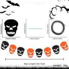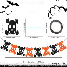 This decorative banner is crafted from durable non-woven fabric, making it lightweight, easy to hang, and reusable for future events. The design features bold skulls and creepy spiders, adding just the right amount of fright to your party setup. Each strand is long enough to stretch across walls, doorways, or ceilings, giving you flexibility in decorating.