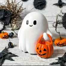 Bring a sprinkle of charm and fantasy to your Halloween setup with this adorably spooky resin smiley figurine holding a cute pumpkin bag. Crafted with delightful details, this tabletop statue captures the whimsy of the Halloween season, making it perfect for fans of witchy aesthetics, fantasy lovers, and anyone who enjoys lighthearted holiday décor. Whether displayed on your mantel, shelf, or office desk, this little smiley character is sure to bring a smile to every face.