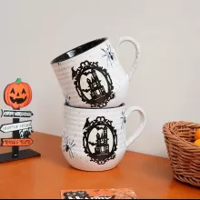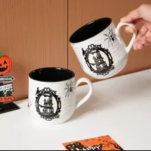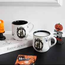 Get ready to add a spooky twist to your next coffee break with this Halloween Spider Ceramic Mug. Perfect for the fall season, this unique mug features a chilling haunted house design complete with creepy spiders and bats. Made from durable porcelain, it’s the ideal addition to your Halloween collection, offering both style and functionality for your home or office. Whether you’re sipping a warm beverage on a chilly autumn morning or serving up a cold drink at a Halloween party, this mug will certainly set the mood.