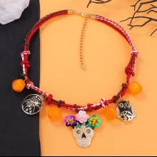 Crafted from durable alloy, this pendant is lightweight yet sturdy, making it comfortable to wear all night. The corded necklace ensures a secure fit while adding a rustic, edgy vibe that complements any Halloween ensemble. Whether paired with a casual outfit or a full costume, this pendant delivers a dramatic touch that elevates your look.