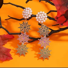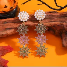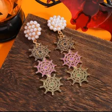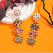 Step into the Halloween spirit with elegance and edge. These fashion-forward spider web dangle earrings are a hauntingly beautiful blend of mystery, glamour, and creativity — perfect for women who want to stand out. Designed with a dazzling enamel finish and faux pearls set in intricate alloy spider webs, these earrings are the ultimate statement piece for your Halloween look or any bold, festive occasion.