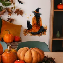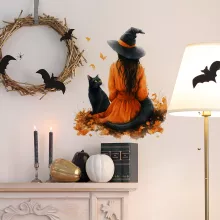 Transform Your Space with Halloween Witch and Black Cat Wall Stickers