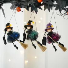 Bring your Halloween scene to life with these eerily enchanting Halloween Witch Ghost Hanging Pendants. Whether you’re hosting a haunted house party, decorating your front porch, or creating a spooky atmosphere indoors, these horror-themed pendants are a must-have for setting the mood. Dressed in ghostly gauze gowns and holding a broom like true witches of the night, they float with creepy elegance, ready to terrify and delight.