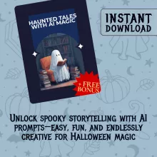 Unleash your spooky side with Haunted Tales with AI Magic — the ultimate guide to using AI for crafting Halloween story prompts that captivate, thrill, and go viral. Whether you’re a writer, teacher, event planner, or simply a Halloween enthusiast, this digital download is packed with practical tools and creative inspiration to take your storytelling to new heights. Perfect for crafting chilling tales, playful ghost stories, or age-appropriate spooky adventures, this guide shows you exactly how to harness the power of AI for unforgettable Halloween magic.
