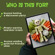 - Plan Your Spooky-Healthy Menu: Tips for balancing fruits, veggies, whole grains, and proteins in sweet and savory combos.