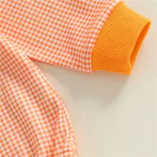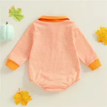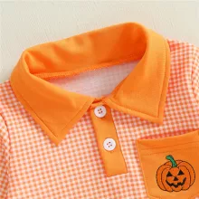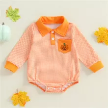 Infant Baby Boys Pumpkin Embroidery Plaid Halloween Romper Jumpsuit