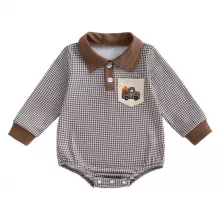 Infant Baby Boys Pumpkin Embroidery Plaid Halloween Romper Jumpsuit