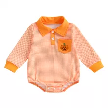 Made from a blend of 95% Polyester and 5% Elastane, this romper offers a soft, breathable, and stretchy fit, ensuring your baby feels at ease all day long. The long sleeves and turn-down collar add a touch of style, while keeping your little one snug and warm during cooler autumn days. Whether you’re headed to a pumpkin patch, a Halloween party, or just a cozy day at home, this romper is the ideal choice for fall festivities.