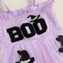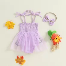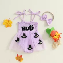 Dress your little pumpkin in the sweetest Halloween style with this charming baby girl romper and bow headband set. Perfectly designed for newborns to 18 months, this sleeveless romper is made for comfort and cuteness all season long. With soft cotton-blend fabric, delicate letter embroidery, and adjustable tie-up straps, it keeps your baby stylish while allowing room to move and grow.