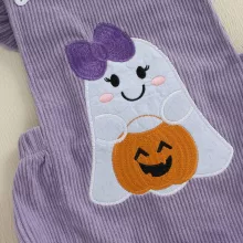 Celebrate your baby girl’s first spooky season in style with this charming Halloween romper and headband set. Designed with ruffled sleeves, a playful bow detail, and a sweet ghost embroidery, this outfit perfectly blends comfort with festive flair. It’s soft, breathable, and made to keep your newborn cozy while looking picture-ready for all those Halloween memories. The matching headband completes the look for extra cuteness.