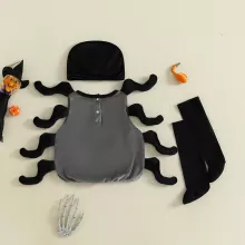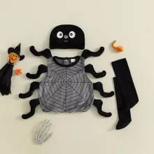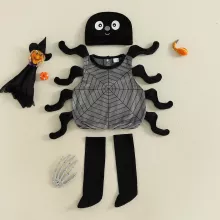 Get your baby ready for a night of fun and adorable scares with this Infant Baby Halloween Spider Costume. Designed for baby boys and girls, this 3-piece set includes a sleeveless vest top, a matching hat, and long socks – everything your toddler needs to transform into the cutest little spider at any Halloween party or family gathering.