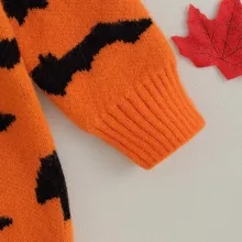 Keep your little one warm and stylish with this adorable kids’ Halloween bat sweater. Designed with a playful bat pattern, this pullover makes chilly days more fun while offering comfort your child will love. Crafted with a soft blend of polyester and cotton, it feels gentle on the skin and keeps them snug during fall and winter adventures. The bright orange color adds a festive touch, perfect for Halloween and beyond.