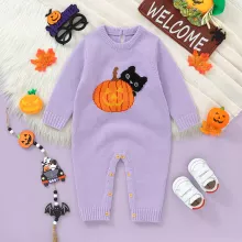 Celebrate the spooky season in style with this cute knitted baby romper. Designed for newborns up to 18 months, this cozy jumpsuit brings comfort and charm together in one adorable outfit. With its playful pumpkin and cat design, it’s the perfect way to dress your little pumpkin for Halloween parties, family photos, or festive days at home.