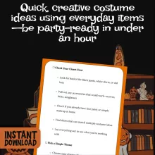 Don’t let Halloween sneak up on you unprepared. Download the Last-Minute Halloween Costume Ideas Checklist today and have your costume ready in minutes. Quick, creative, and stress-free—your new go-to Halloween resource. Click “Add to Cart” now for instant access and be the one everyone remembers this Halloween!