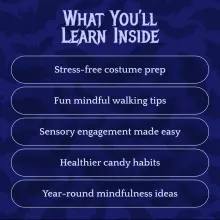 - Chapter 1: Setting the Scene for a Mindful Halloween – Discover what mindful trick-or-treating is, why mindfulness makes the holiday even better, and how to prepare your costume and mindset.