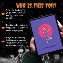 • Chapter Two: Crafting Your Flow — Tips for setting the scene with music, props, and lighting; choosing asanas with a Halloween twist; common mistakes to avoid; and AI tools for creative brainstorming.