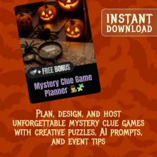 This guide is designed for teachers, event planners, parents, party hosts, and anyone who loves puzzles and storytelling. What makes the Mystery Clue Game Planner unique is its blend of traditional puzzle design with modern AI-powered creativity, giving you endless ways to customize your game.