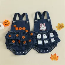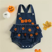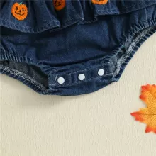 Dress your little one in this irresistibly cute Halloween denim romper and watch her steal the show this fall season!