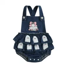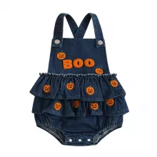 Dress your little one in this irresistibly cute Halloween denim romper and watch her steal the show this fall season!